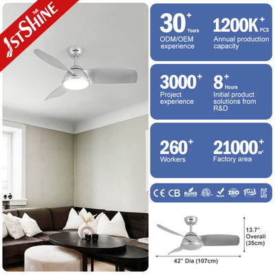 42" 6 Speeds Ceiling Fan Modern Plastic Cover Sliver With led Light High Air Volume