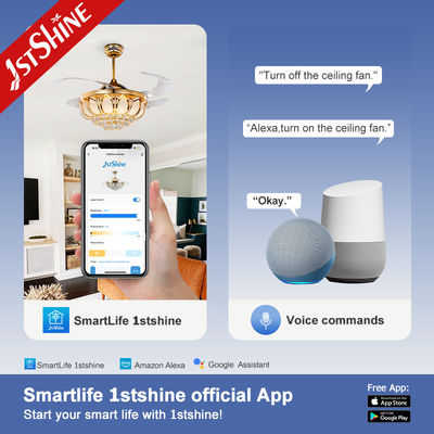 42 Inch Retractable ABS Blade Crystal Ceiling Fan With Light Led