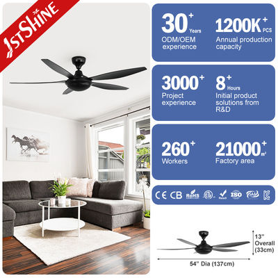 54 Inch Dc Motor Black Plastic Ceiling Fan With 6 Speeds Remote Control