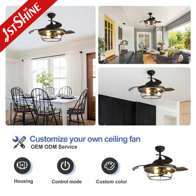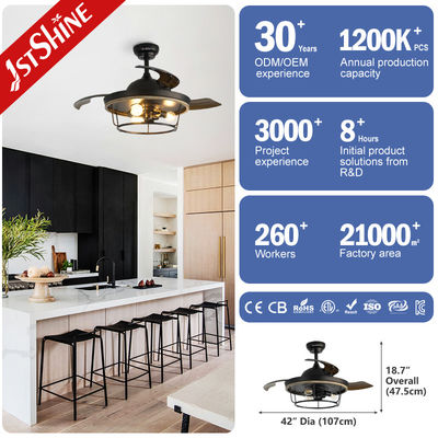 Our farmhouse ceiling fan with lights has 3 invisible fan blade, which will stretch out and put inside automatically when turn on/off the fan. The blade is made of high-quality PC material, making it more durable. Fit your need in all seasons. Set the fan blades to rotate forward in summer, 3-Level wind speeds will make you experience different coolness; set the fan blades to rotate reverse in winter, it helps you increase indoor air circulation and return warm indoor air without generating wind.