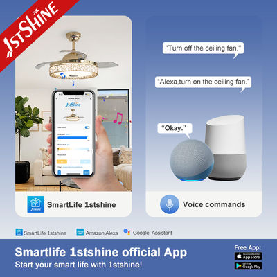 4000K 6000K Retractable Blade Ceiling Fan Chandelier Color Changing