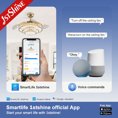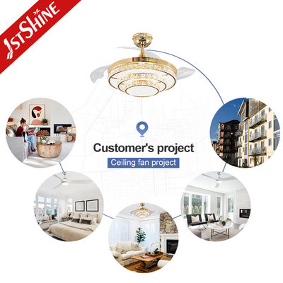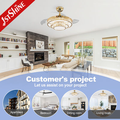 220V Crystal Retractable Ceiling Fan Light With Remote Control AC Motor