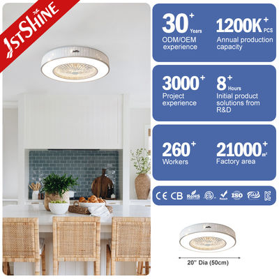 Ceiling fan and LED light combination in modern white finish.Featured in no exposed blades with ABS wind deflector which can adjust 360° freely.