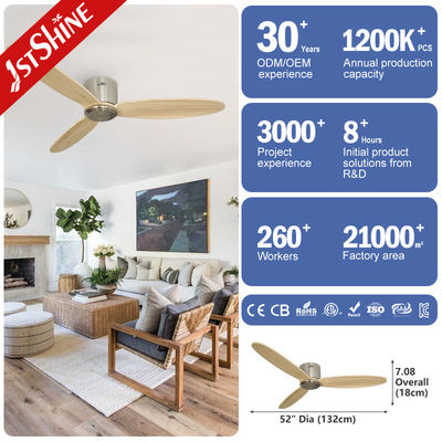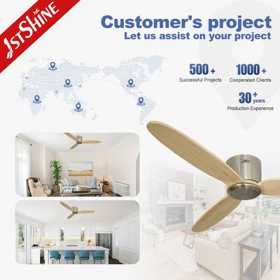 Flush Mount Modern Ceiling Fans with Remote Control 6 Speed solid Wood Blades