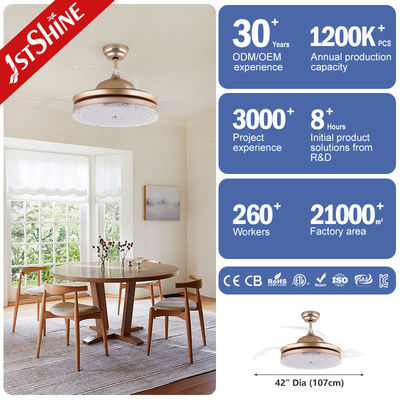 3 Clear Blades Golden Modern Retractable Ceiling Fan With LED Light
