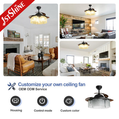 | Material | Wrought iron body+PC blades+Glass lamp shade |