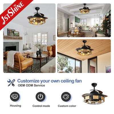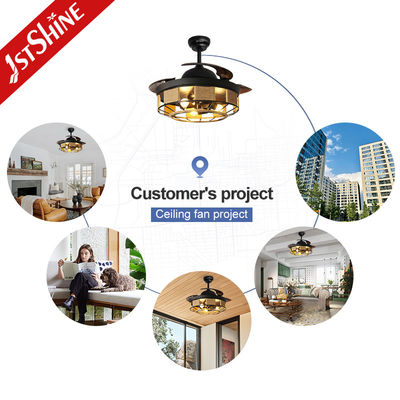 42 Inch Indoor Black Retractable Ceiling Fan With Light And Remote Control