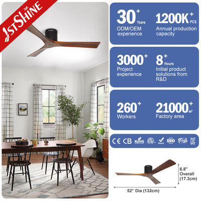 This is a flush mount ceiling fan with 3 solid wood blades. With a build-in mute DC motor, let you enjoy fresh and cooling air and no need to endure the noise. High-performance reverse function, let your home enjoy warm air in winter. This indoor black ceiling fan with walnut blades features a clean and simple line, creates a modern and permanency home style for your home. The remote control easies your life, let you control the wind speed and direction.