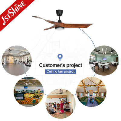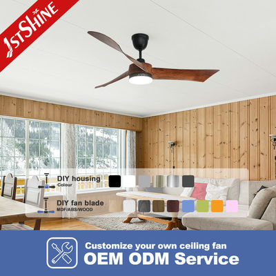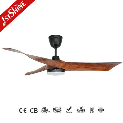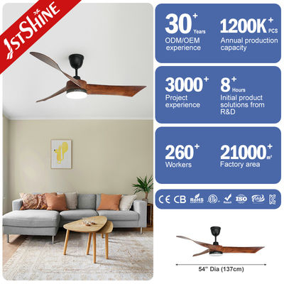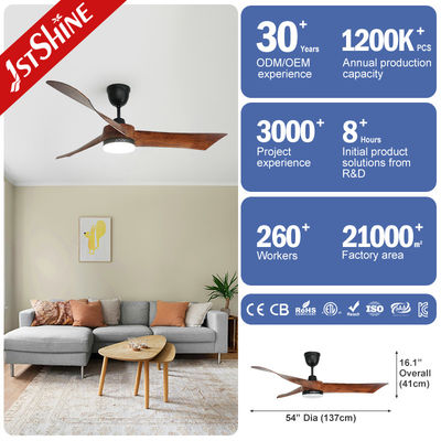 Wooden Color 54 Inch Led Ceiling Fan 3 Plastic Blades With Remote Control