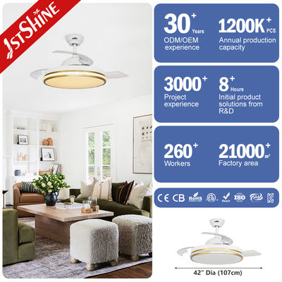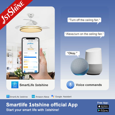 42 Inch Smart Small Retractable LED Light Ceiling Fan With Wifi Control For Bedroom