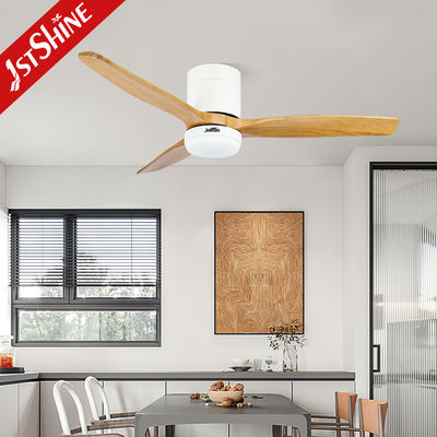 3 Natural Wooden Blades Flush Mount Smart App Control Ceiling Fan With LED light