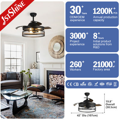 Our farmhouse ceiling fan with lights has 3 invisible fan blade, which will stretch out and put inside automatically when turn on/off the fan. The blade is made of high-quality PC material, making it more durable. Fit your need in all seasons. The farmhouse ceiling fan lights have 3 standard E26 holders, and each of holders is divided. Any E26 LED bulb is easily assembled without removing the cage. Ideal for living room, bedroom, restaurant, dining room, etc.