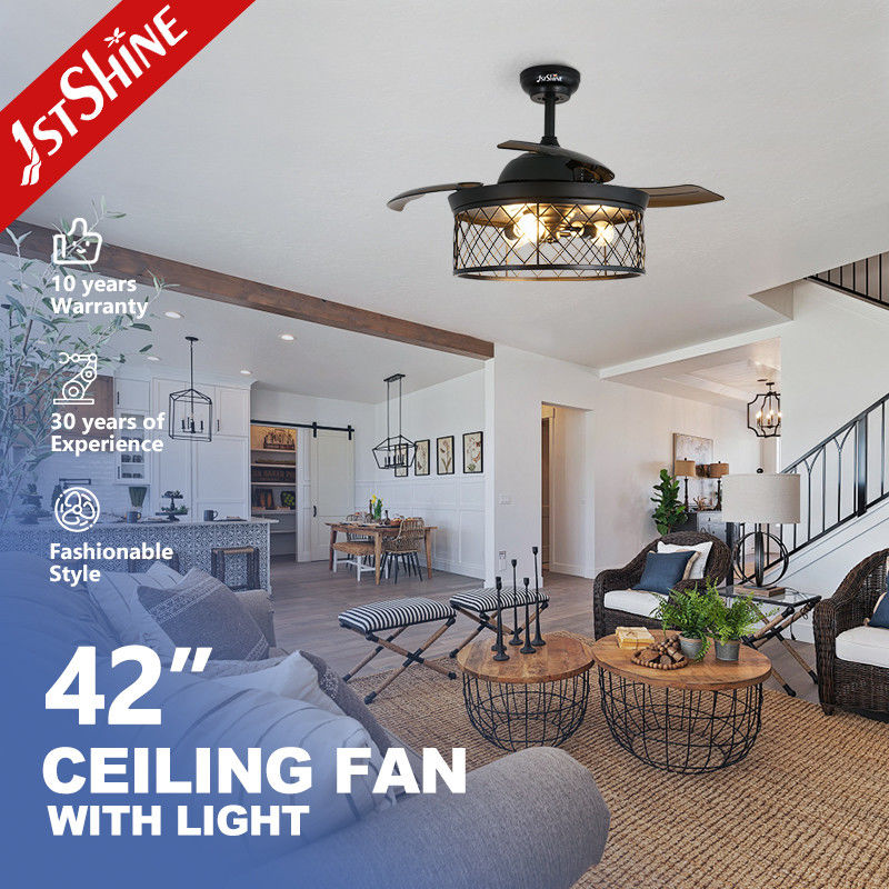 Our farmhouse ceiling fan with lights has 3 invisible fan blade, which will stretch out and put inside automatically when turn on/off the fan. The blade is made of high-quality PC material, making it more durable. Fit your need in all seasons. The farmhouse ceiling fan lights have 3 standard E26 holders, and each of holders is divided. Any E26 LED bulb is easily assembled without removing the cage. Ideal for living room, bedroom, restaurant, dining room, etc.