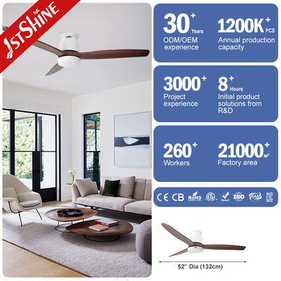 Introducing the 52 inches Flush Mount Solid Wood Blades Ceiling Fan, a modern and practical solution for your cooling and lighting needs. This sleek ceiling fan features solid wood blades and a flush mount design, making it ideal for low ceilings and small rooms. With its compact profile, it seamlessly fits into any space while providing efficient airflow and a contemporary look.The center hub houses energy-efficient LED lights, which illuminate your space with a warm and inviting glow. Whether you need ambient lighting or focused illumination, this ceiling fan provides a practical lighting solution that complements its cooling functionality. Experience the best of both worlds with this space-saving and stylish ceiling fan.