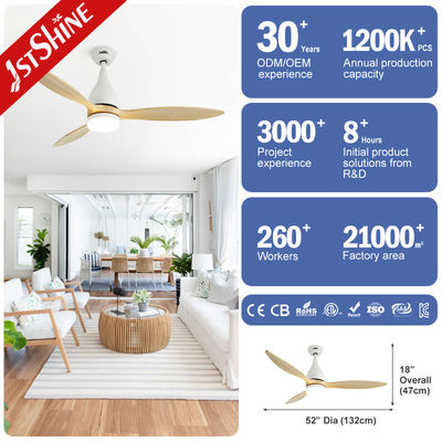 We are delighted to introduce our 52-inch contemporary style ceiling fan. This product is crafted with a combination of metal, solid wood blades, and an acrylic lampshade, ensuring both an elegant appearance and robust construction. The fan boasts three sturdy wooden blades that deliver powerful airflow. These blades are constructed from authentic wood, guaranteeing durability and longevity. Moreover, this ceiling fan is equipped with a 3-color LED light source, enabling you to select the desired lighting ambiance for your space.
