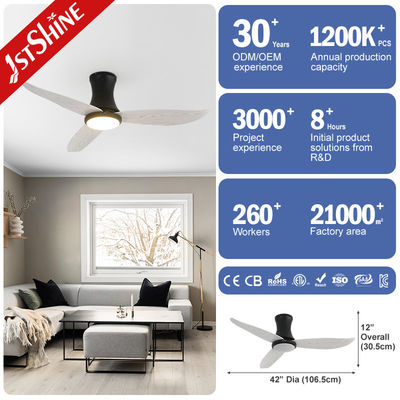 This sleek and modern 42-inch ceiling fan features a black finish and three woodgrain blades that will complement any contemporary décor. Powered by a whisper-quiet DC motor, this fan is perfect for bedrooms or any other space where you want to relax without the noise. With six adjustable speeds, you can customize the airflow to your exact liking.