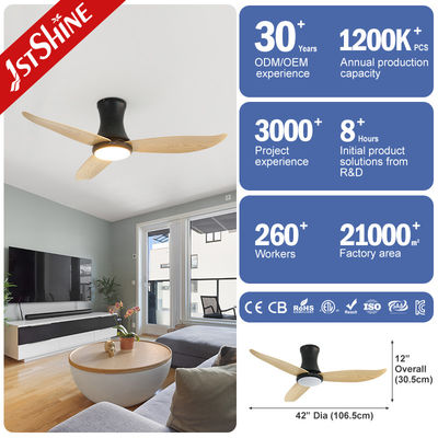 This sleek and modern 42-inch ceiling fan features a black finish and three woodgrain blades that will complement any contemporary décor. Powered by a whisper-quiet DC motor, this fan is perfect for bedrooms or any other space where you want to relax without the noise. With six adjustable speeds, you can customize the airflow to your exact liking.