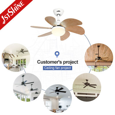 Decorative Small LED Ceiling Fan Modern 6 Wood Blade Smart Remote Control