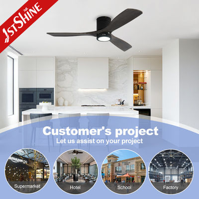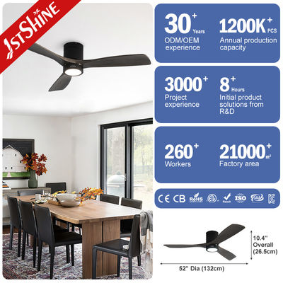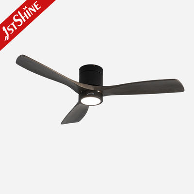 Decorative 3 Natural Wooden Blades Flush Mount Led Tuya Smart Ceiling Fan With Light