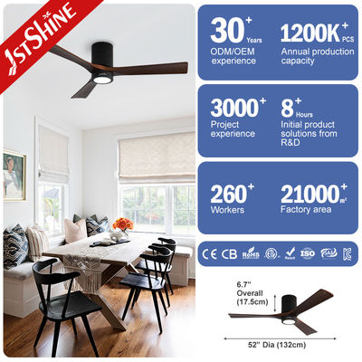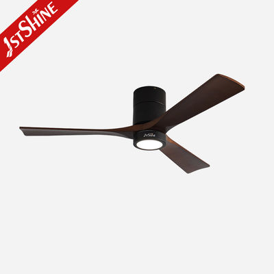 Decorative 3 Natural Wooden Blades Flush Mount Led Tuya Smart Ceiling Fan With Light