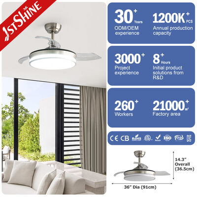 Featuring a premium brushed nickel finish and transparent retractable blades, this fan delivers sophisticated contemporary styling. The clean lines and minimalist design enhance the visual appeal of any room while maintaining functional excellence.
